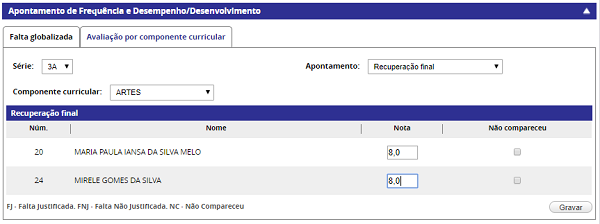 - Nota da recuperação final: que exibirá o valor informado no apontamento Recuperação final.