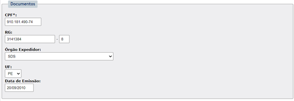 Documentos - Informe os campos CPF, RG, Órgão expedidor, UF e Data de emissão.