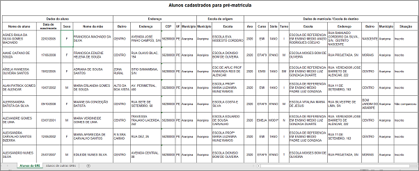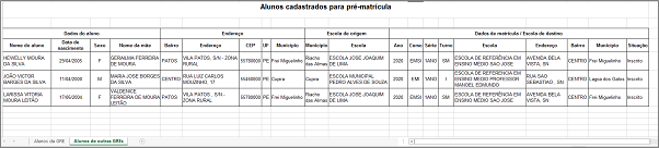 Aba - Alunos da GRE - Exibe todos os alunos que escolheram as escolas que estão na mesma GRE que emitiu o relatório.