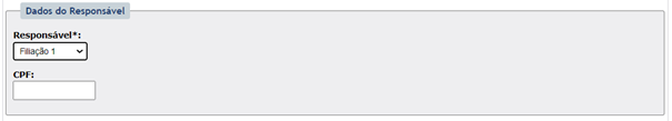 Dados do responsável – Tela destinada ao cadastro da pessoa responsável pelo estudante. Selecione o Responsável e cadastre o número do seu CPF.