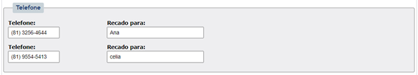 Telefone – Tela destinada ao cadastro dos números de telefone do responsável ou número de telefones para recado. Informe os campos Telefone e Recado para.
