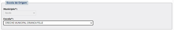 Escola de origem – Tela destinada a informar qual a escola de origem do aluno. Os campos: Município e Escola devem ser informados.